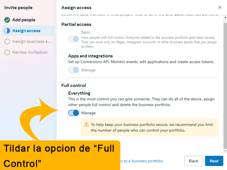 A continuación, le explicaremos las instrucciones paso a paso para otorgarnos acceso de Facebook.